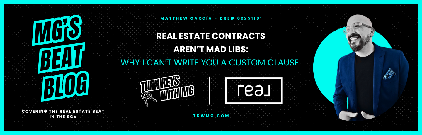 Readers are encouraged to consult with licensed professionals before making any real estate decisions. Turn Keys With MG, Matthew Garcia DRE# 02251181, and Real Brokerage Technologies assume no liability or responsibility for actions taken based on the content of this blog. Always verify any legal or regulatory advice with appropriate authorities or qualified professionals.
